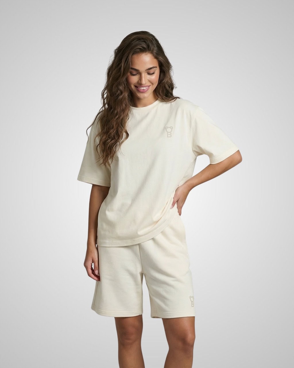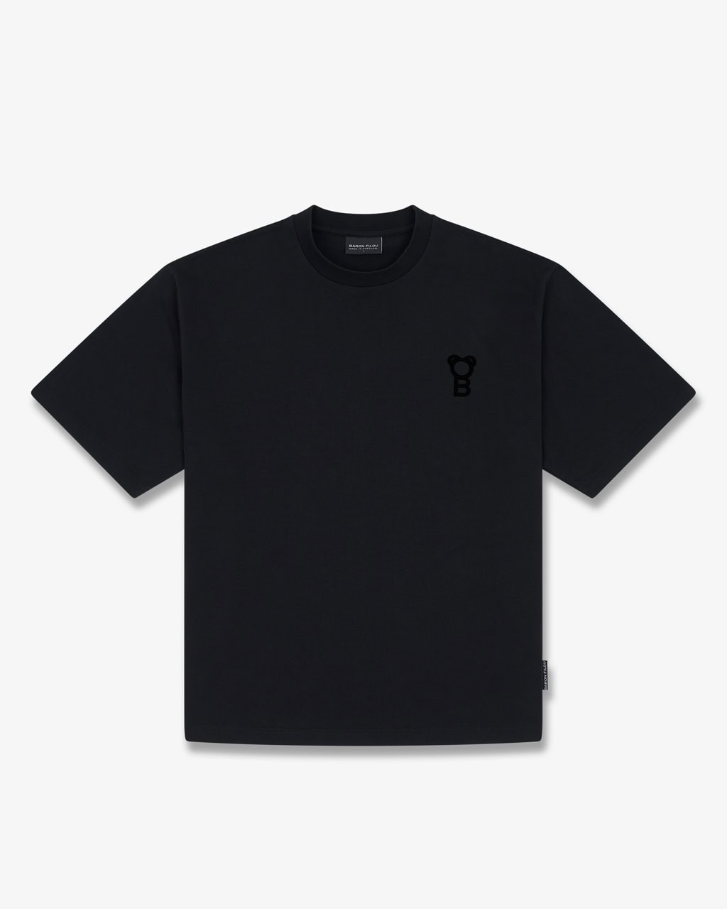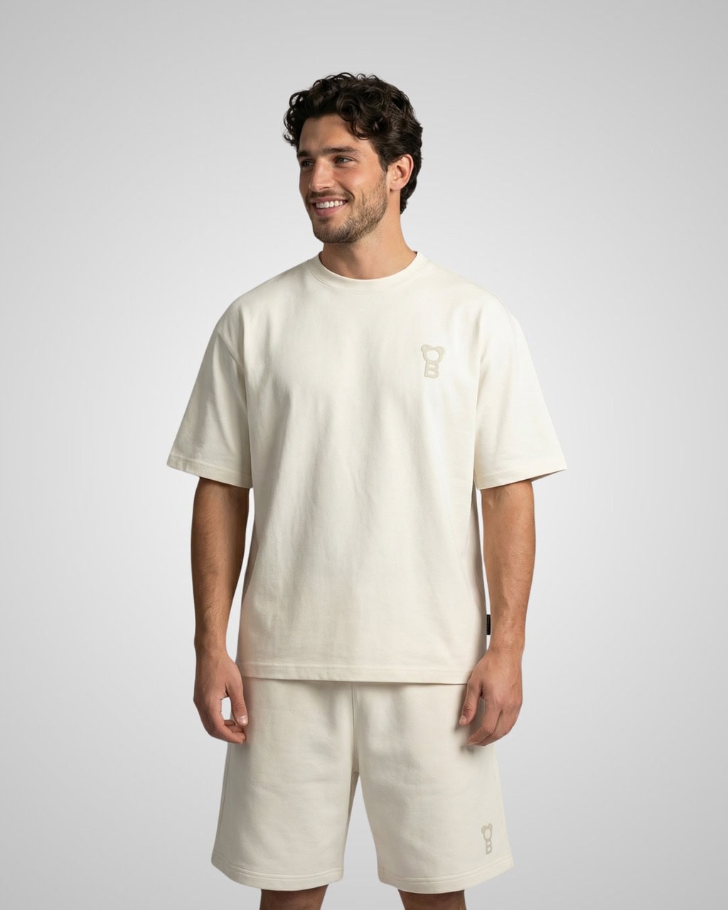 Confeccionada en 100 % algodón premium en calidad heavyweight de 280 GSM, esta pieza se siente suave pero con estructura. El tejido mantiene su forma y crea una silueta oversize estructurada que cae de manera natural sobre el cuerpo.